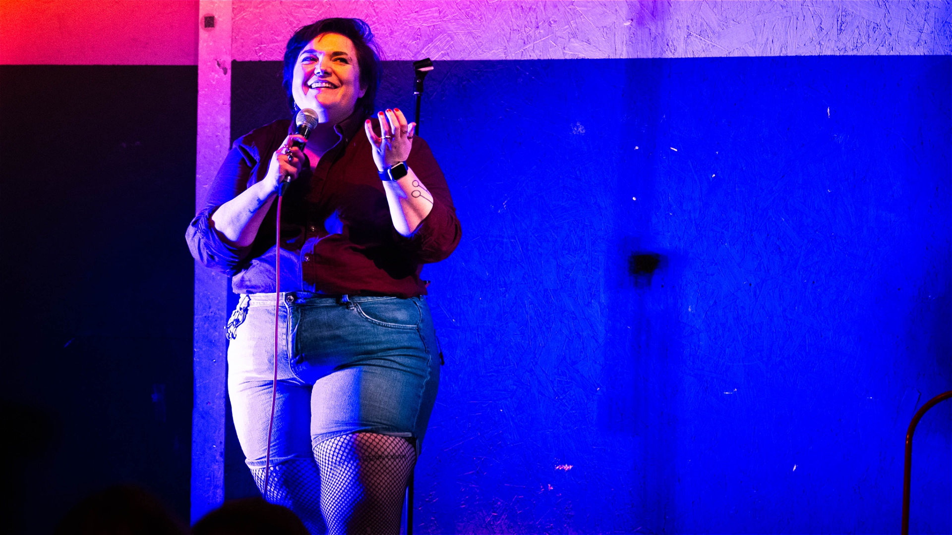 The Whole Time is a standup comedy show, with a mix of autobiographical and observational humour. The show focuses on the recurring theme of realising things about my identity far later in life than I should have done, covering topics like queer dating / avoiding rock climbing, awkward therapy appointments, tedious gender clinic forms, being a nonbinary mess and just wishing to be a rat.