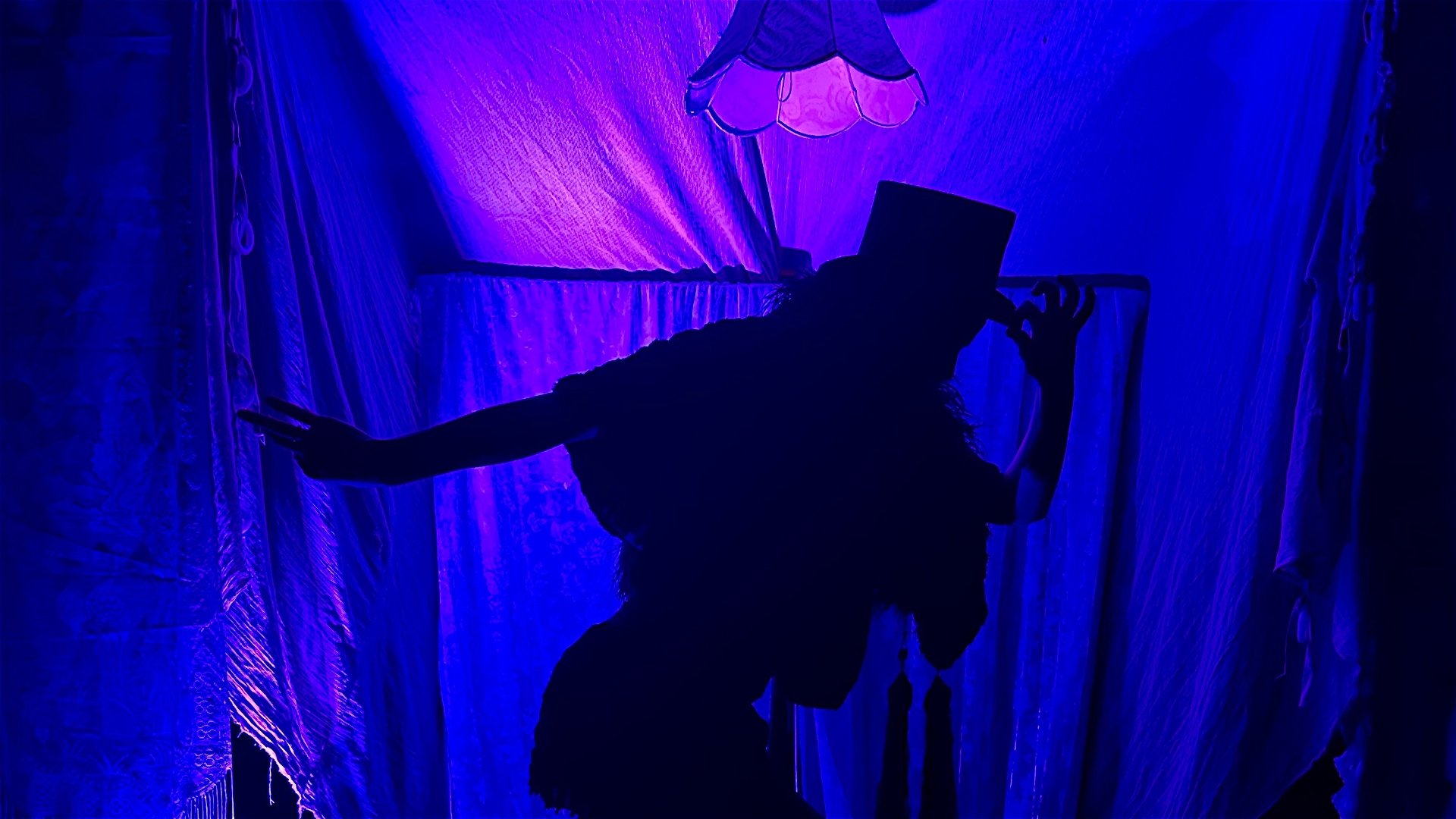 Welcome to our Care Home Cabaret! Jane, the senior carer and MC, is here to care for you. Fret not, any issue, Jane has a tissue! Behind the lace curtains, one woman is sitting with her tale of Familial Alzheimer’s Disease and the 50/50 risk it might touch her soon.