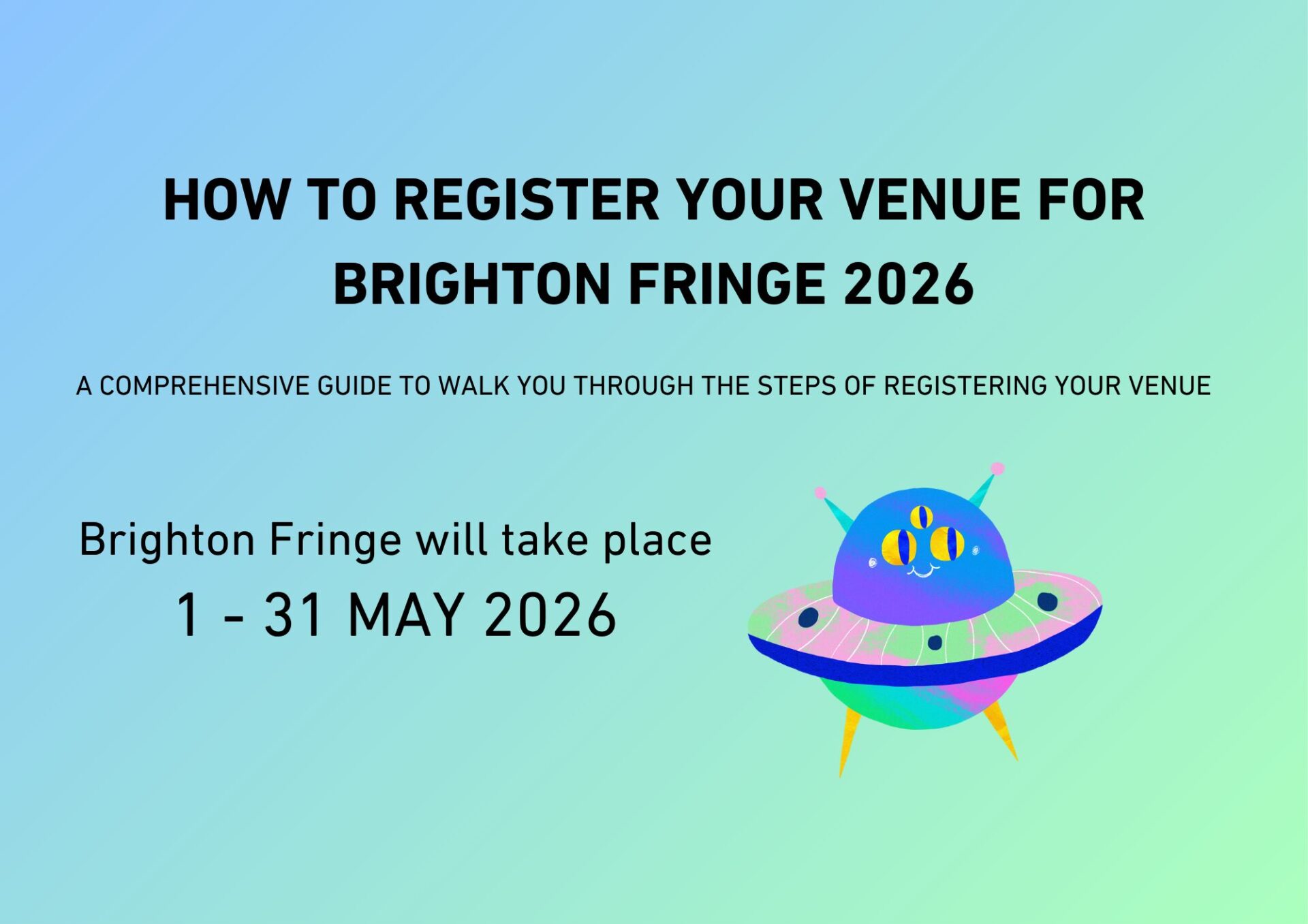 If you want your venue to be visible to artists and producers for 2026, you will need to add your venue to the Brighton Fringe 2026 festival in Eventotron after registration opens on October 8th 2025. If you've set up a venue profile in the past you will still need to add it to the 2026 Brighton Fringe season in Eventotron.